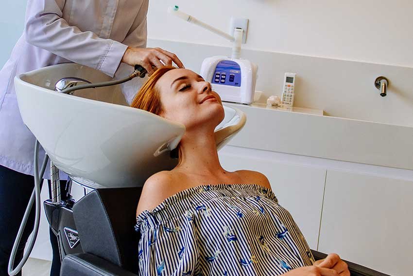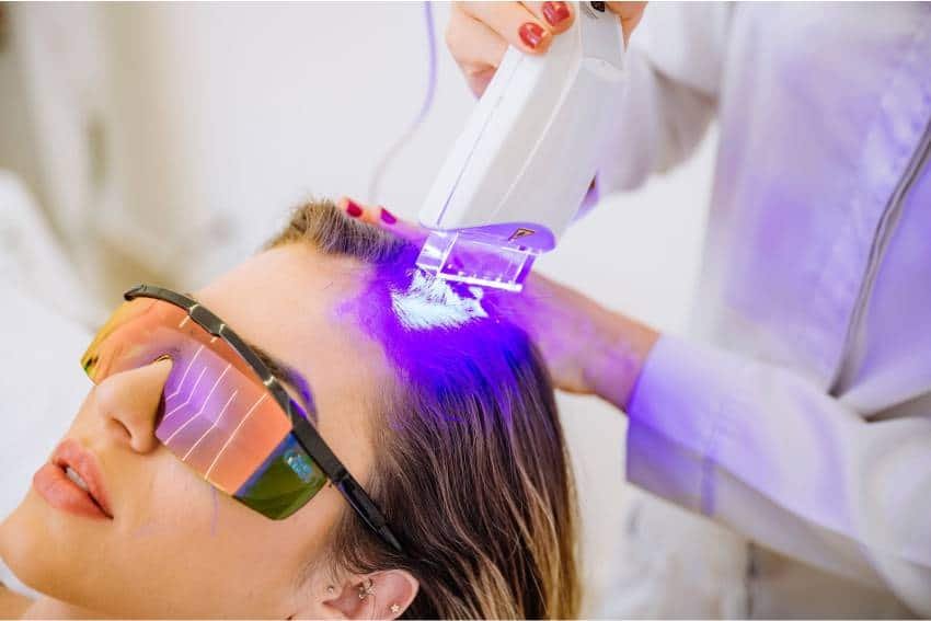 A tecnologia de laser e LED de baixa intensidade é usada para estimular a circulação sanguínea e melhorar a absorção de nutrientes pelos folículos.